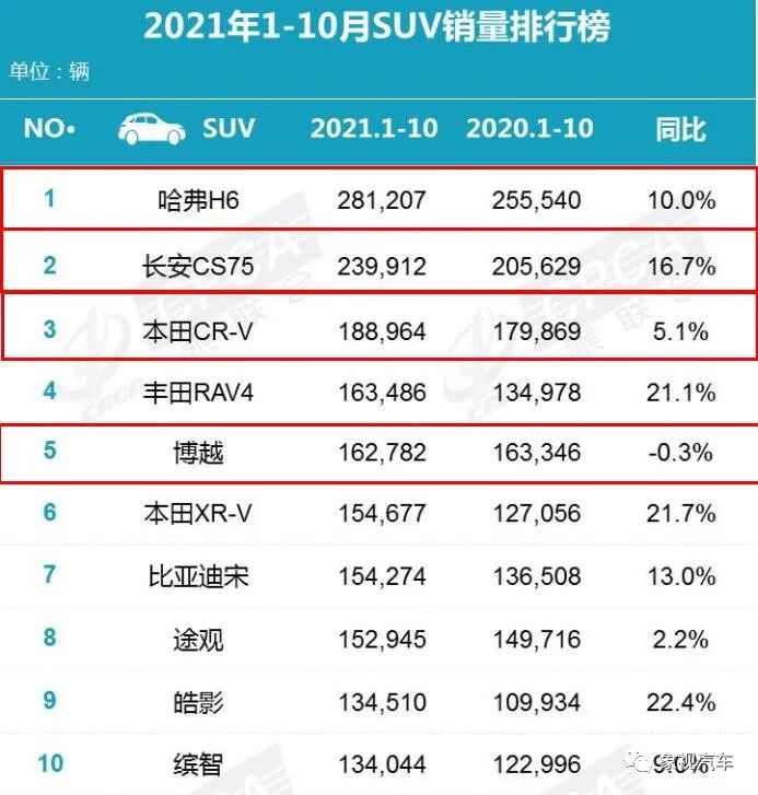 到了11月博越同比下跌32.5%,销量只有14296辆,而比亚迪宋和CS75都是两万多,哈弗H6甚至超越3万辆。博越的销量,还不到哈弗H6的一半。
