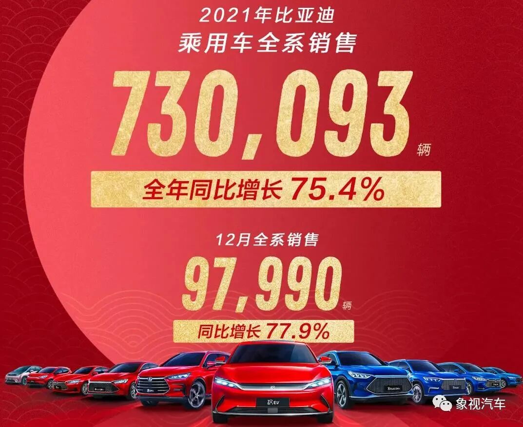整个2021年,比亚迪整体销量暴涨75.4%,高达73万辆。而且,今年比亚迪全面解除产能危机之后,销量会再一次迎来大爆发,月销十万年销百万指日可待。