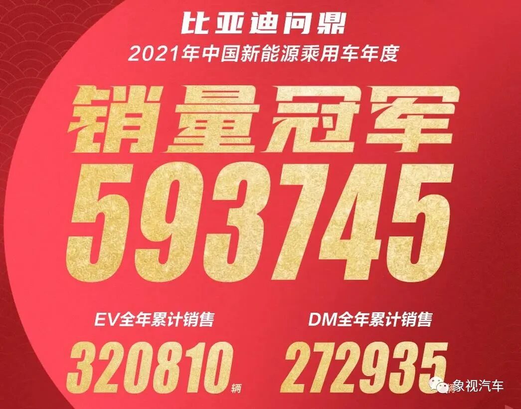 不过让人惊喜的是,比亚迪王传福代表自主车企,替李书福实现了这个目标。公开数据显示,比亚迪2021年全系销量为730093台,同比大涨75.4%,在所有车企中遥遥领先。其中新能源汽车销量593745台,同比暴涨231.6%。比亚迪新能源汽车销量占比为81.3%。