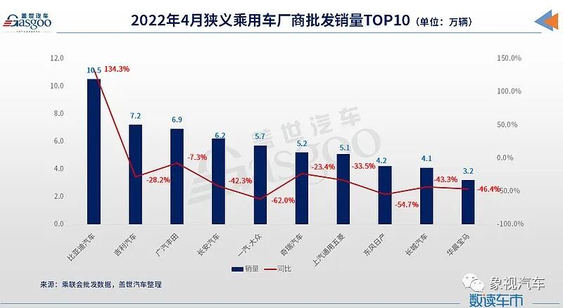 因为部分地区疫情反复和供应链持续短缺,汽车行业遭受重大影响。令人欣喜的是,关键时刻自主品牌体现出强大的抗风险能力。乘联会厂商批发销量十强榜单,与之前相比出现了较大变化。