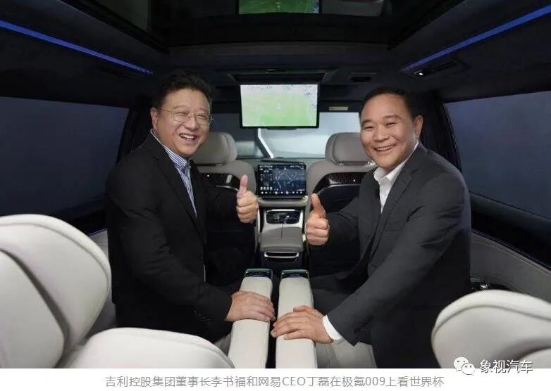 近年来身影少现于公共场合的李书福,亲自出镜为极氪009带货,邀请网易丁磊一起在极氪009里面听音乐、看世界杯。