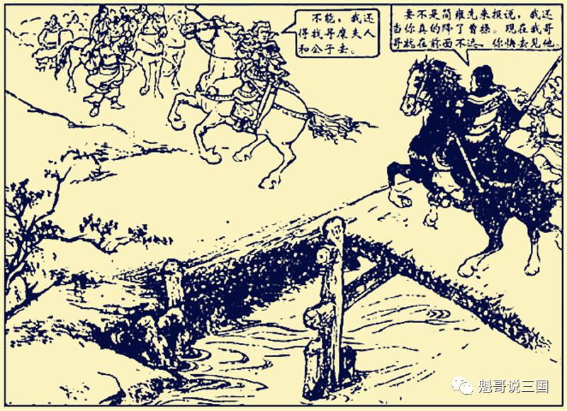 只见张飞横矛立马于桥上,大叫:“子龙!你如何反我哥哥?”云曰:“我寻不见主母与小主人,因此落后,何言反耶?”飞曰:“若非简雍先来报信,我今见你,怎肯干休也!”