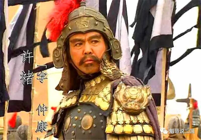 许褚押送粮草路上,遇上前来劫粮的张飞,战不数合,被其刺中一矛,深受重伤,被手下救走。醉酒的张飞吓退吕布,而醉酒的许褚却被张飞一矛刺中肩膀,通过这场张飞和许褚的一战,可知许褚和张飞还是有很大差距,被张飞击败。演义中相关描述如下: