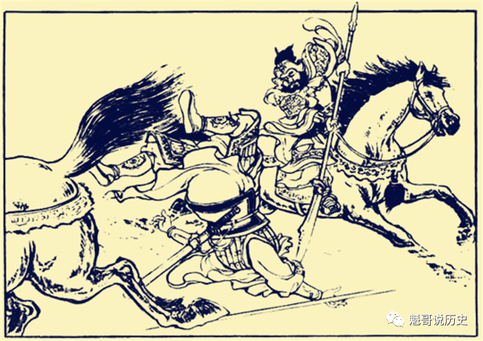 原文:河北军如波开浪裂,关公径奔颜良。颜良正在麾盖下,见关公冲来,方欲问时,关公赤兔马快,早已跑到面前;颜良措手不及,被云长手起一刀,刺于马下。