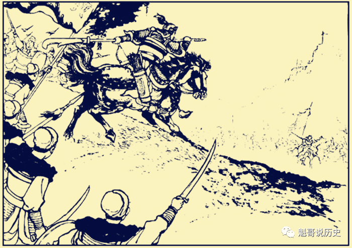 《三国志》:二十四年正月,备夜烧围鹿角。渊使张郃护东围,自将轻兵护南围。备挑郃战,郃军不利。渊分所将兵半助郃,为备所袭,渊遂战死。
