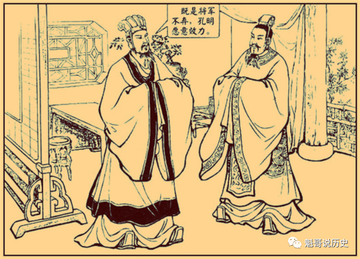 公元207年冬天,在新野住了数年的刘备先后三次到茅庐请诸葛亮,第三次终于将诸葛亮请出山,并拜其为军师,刘备的事业翻开了新的一页。在茅庐的时候,诸葛亮为刘备分析了天下形势,并提出了魏蜀吴三足鼎立的战略构想,这就是著名的《隆中对》。