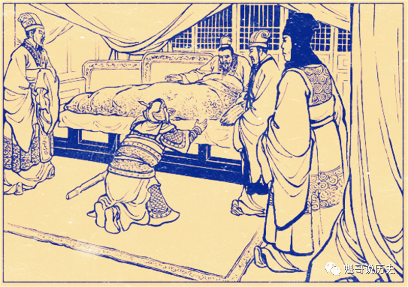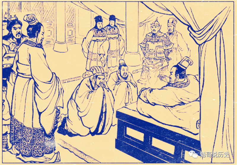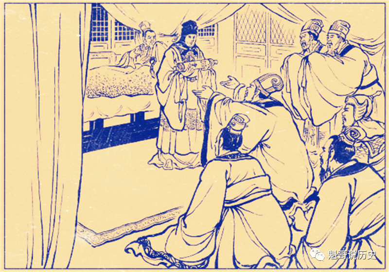 三国演义第八十五回中,刘备为关羽、张飞报仇不成,反遭夷陵惨败,不得已退回白帝城,他还生病了。刘备病了一年多以后,精神更加恍惚,眼前满是二弟关羽、三弟张飞的影子,他知道自己大限将至,于是将诸葛亮、李严、赵云、刘永、刘理等人召来,托付后事。
