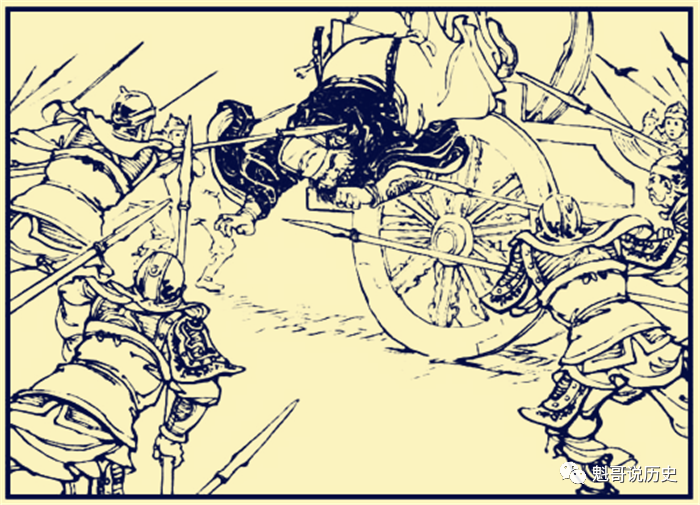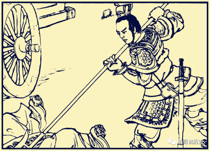 原文:使虎贲执刃扶之也。魏武为司空,破张绣,入觐天子,亦行此制,汗流浃背,自此不复朝觐也。