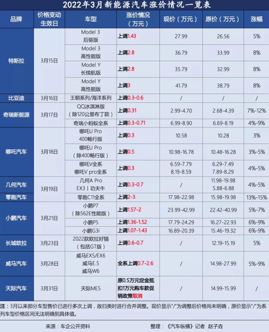 今年动力电池原材料价格大幅上涨后,包括比亚迪、特斯拉、小鹏、威马、哪吒、零跑、欧拉等不下20家车企都纷纷宣布涨价,涵盖了新能源高中低端的多款热门车型,涨幅几千元到三万元不等。甚至特斯拉一周双涨,三款高配车型累计涨幅2.8万元至3万元不等。