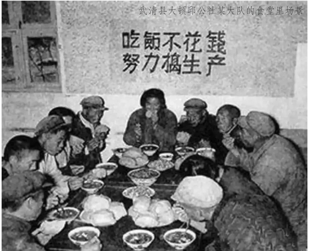 吃食堂的当天饭剩下很多,肉也剩下很多,乡下农民买棉花路过街上的,也拉人家来吃,人家不好意思,便劝人家说“共产主义了,天下一家,吃饭不要钱了” 。