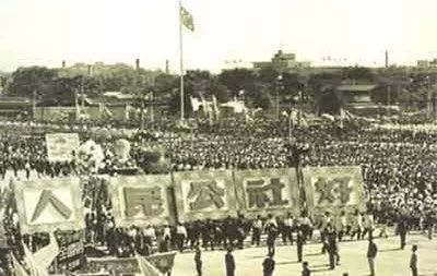 1958年9月,江苏省射阳县兴桥大队召开万人大会,人们举着三角小旗,拼命地喊着“人民公社万岁”,这是我平生看到的最为声势浩大的场面。(来源:掌上历史/作者:李锦)