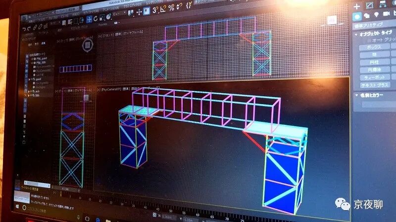 大门设计用的3ds MAX软件,6月份设计稿通过老师们审查,9月新学期开始动手搭建。涂装很费时间,据说很需要技术。垂幕的布料向东京某家商店讨得,是不用了的废材,据说文实成员抱着布料回学校时在电车里备受瞩目——布料又沉又不好拿,那模样太招人了。文实的几个干部同学利用期末考试后下午不上课的空档时间,借来四台专业缝纫机,把布料缝成高5米宽15米的幕布。因为要挂起来,轻飘飘的状态会被不断吹起,容易撑破,所以每条接缝都必须反复缝合,承受重量的部分还要补上几层里衬。