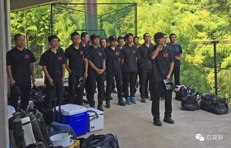 ▲捕球手装备复杂些,同伴帮忙穿上身