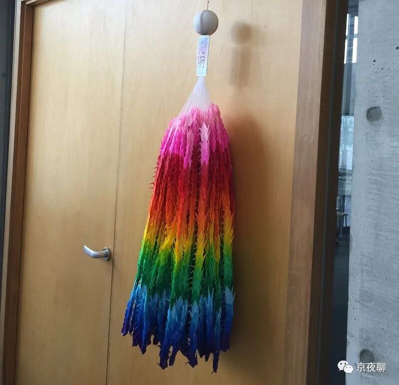 每年夏季甲子园选拔赛前,球队的妈妈们都会准备“千鹤挂件”,预祝球队胜利。每一只纸鹤都是妈妈们亲手折叠,比赛时球员们会把千鹤挂件带到球场,挂在球队休息场。