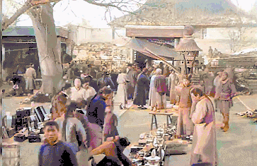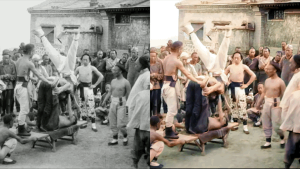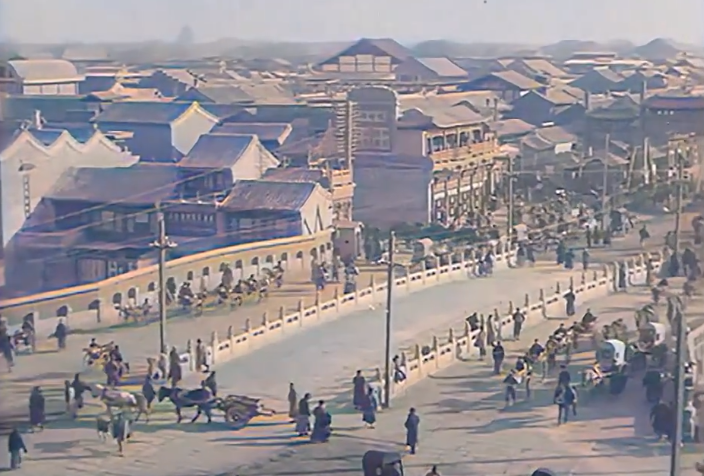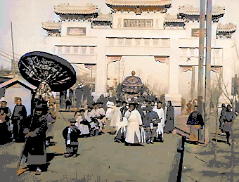 图4:寺庙祭拜。画面中看出那时的女性的三寸金莲脚,男性还留着长辫。