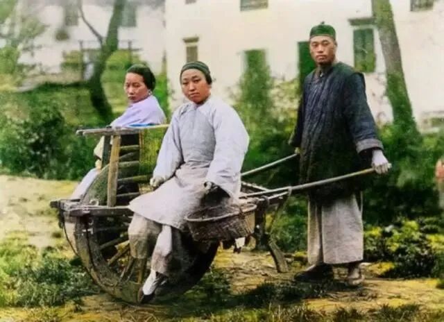独轮车是底层人们的主要交通工具,这种独轮车既可以载人可以运货物。