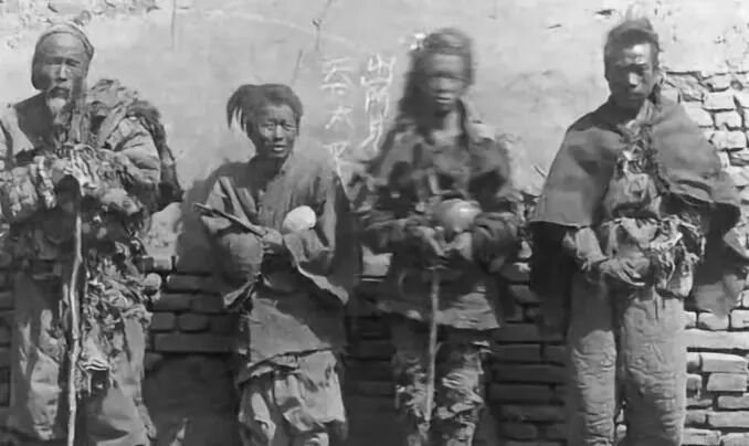 清朝光绪年间因为自然灾害频发,导致饥荒饿死了一千多万人,照片中的就是逃荒的难民,清朝统治者生活奢侈,鱼肉百姓,割地赔款的重担全部由百姓承担。