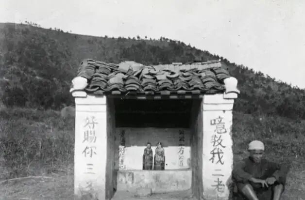 南方的土地庙,百姓认为只要供奉土地公公便可保佑风调雨顺,旁边的人便是等着有人给土地公上供,这样他就可以吃一些贡品来果腹,等了很久都没有人来,因为当时家家户户没有多余的饭食去上供给土地公公。