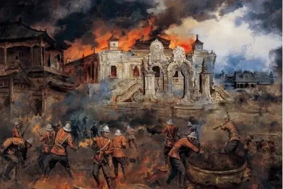 1860年,第二次鸦片战争爆发,英法联军攻进了北京,清朝腐朽的统治者逃得一干二净,联军趁机劫掠京城,火烧圆明园,“万园之园”就这样毁于一旦。