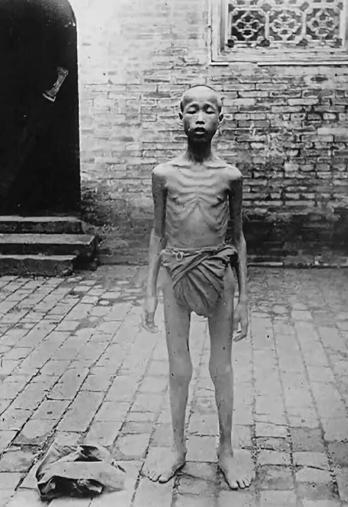 一位瘦骨嶙峋的清朝男子,看身板单薄,也就十六七岁。苛捐杂税格外重,吃饭都是一个问题。衣不蔽体,光着脚板,连双草鞋都买不起。贫富差距之大令人无法想象。