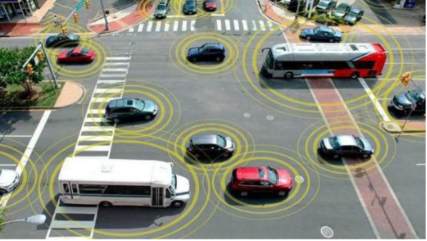 路上的每辆车都有信号感应、探测的功能,不管是超车、变道、急刹,都提前实时 地告诉周围车辆