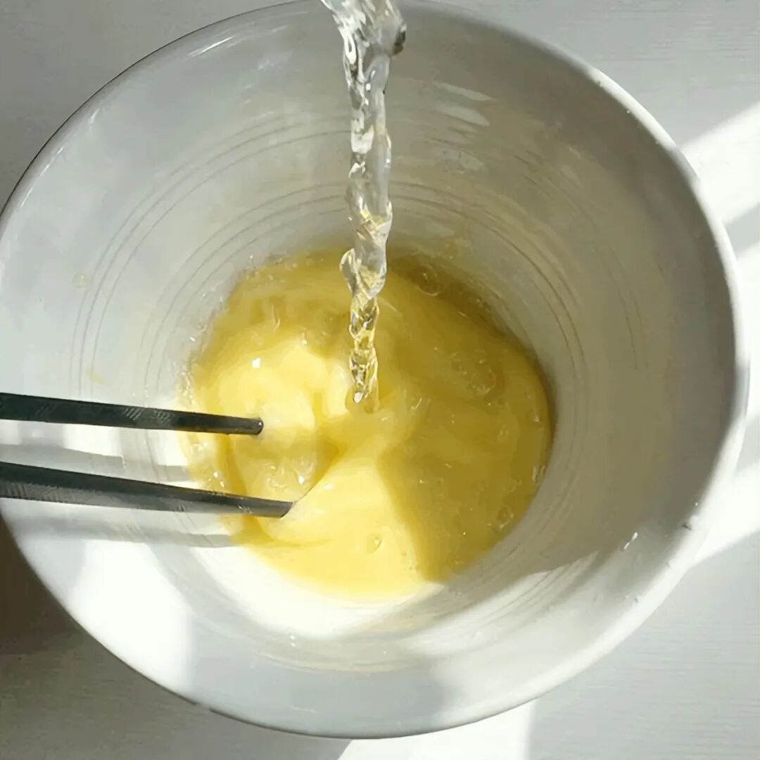 3、这个时候需要继续准备开水,等水沸腾之后,就将容器中的水倒掉,将鸡蛋倒入容器中,并用筷子打散,随后将开水倒入其中。