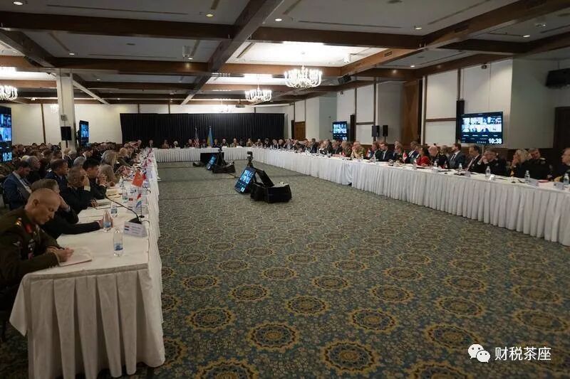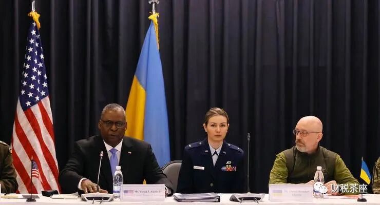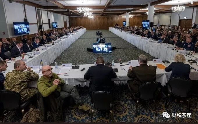 图为40多个国家国防部长在德国拉姆施泰因美国空军基地举行会议,讨论对乌克兰的一揽子军事和财政援助