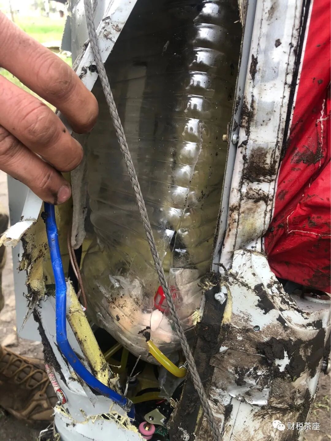 图为被击落俄罗斯无人机中塑料瓶油箱