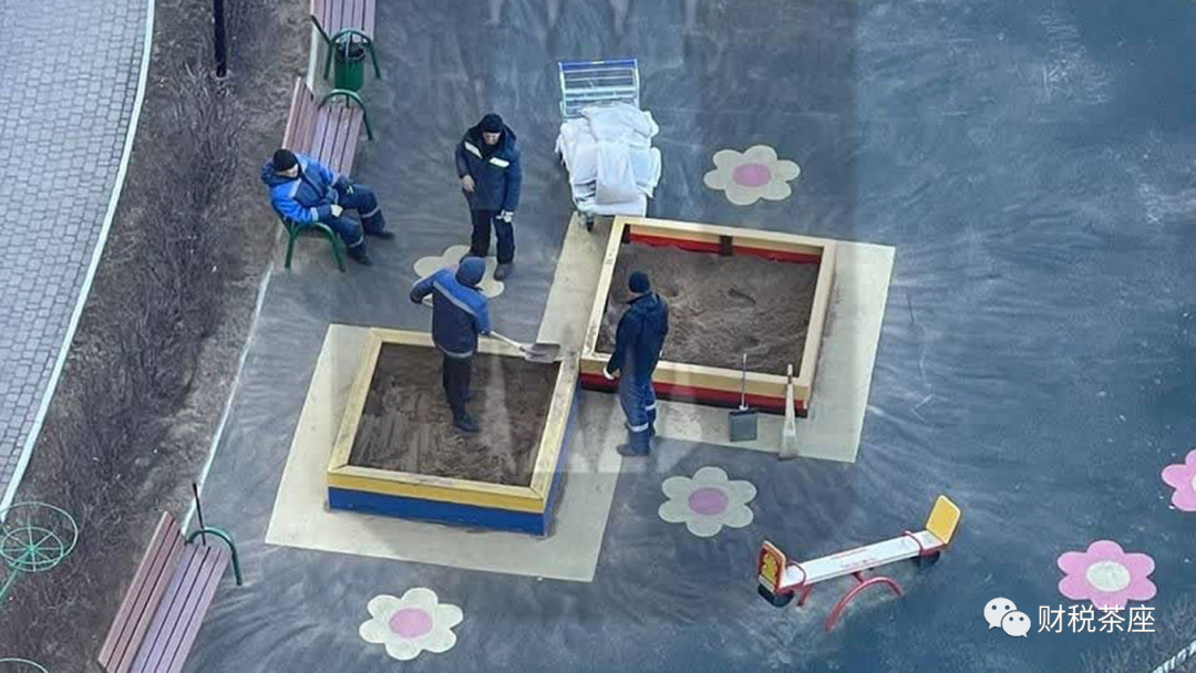 莫斯科一个蓝黄相间的沙箱在当地居民投诉后变成了绿色。