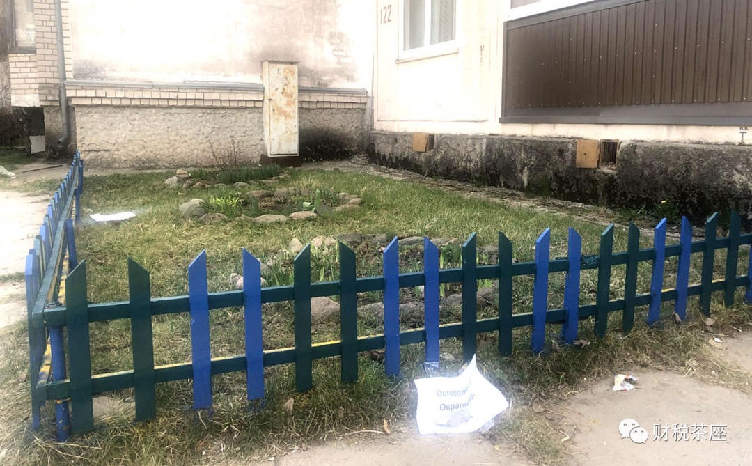 普斯科夫的警察强迫当地居民重新粉刷他家附近的黄色和蓝色栅栏。