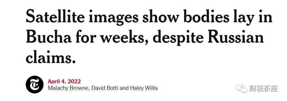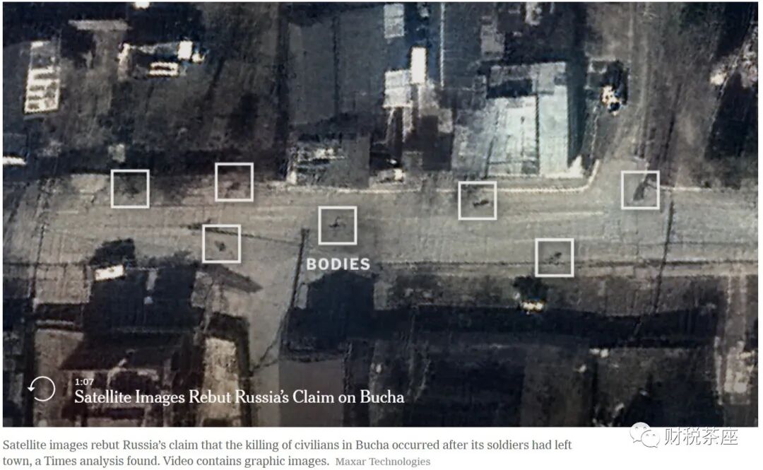 (The New York Times)对卫星图像的分析驳斥了俄罗斯的说法。俄罗斯声称,基辅郊区布恰的平民死亡事件发生在基辅士兵离开该城之后。