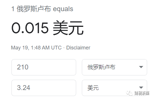 按照今日5月19日俄罗斯官方汇率,每天开支大概3.24亿美元,折合人民币22亿每天。