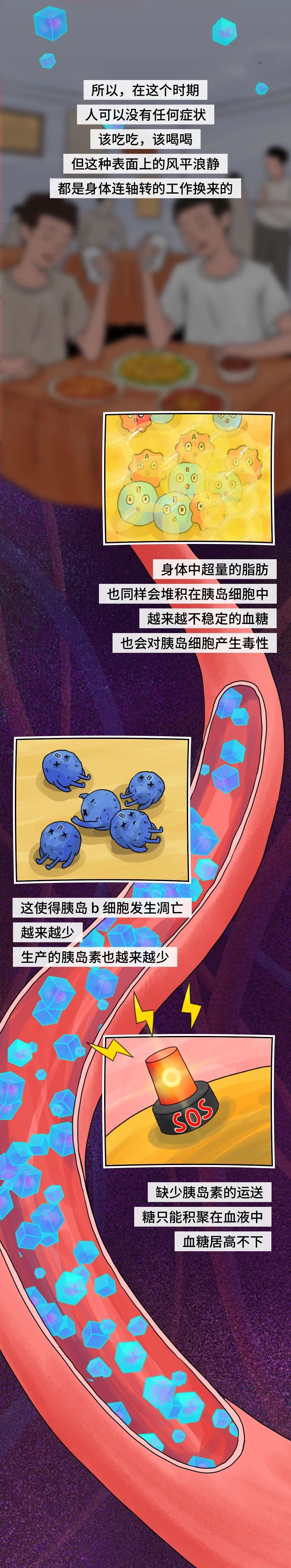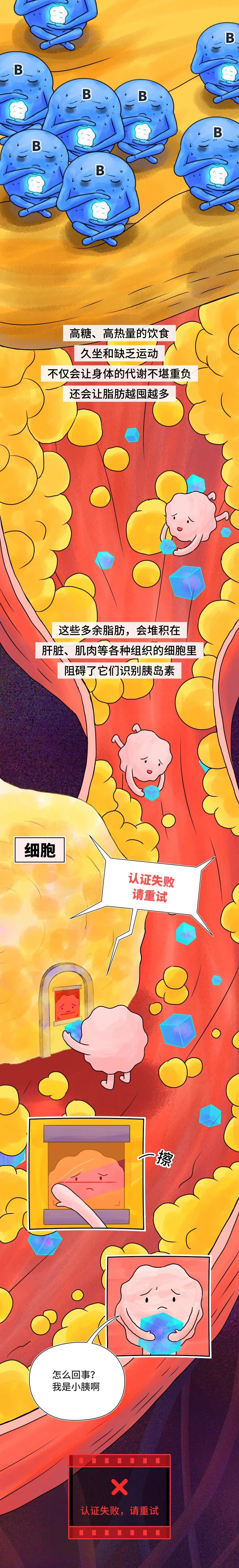 高糖高盐高脂的饮食、久坐、缺少运动这些不良生活习惯都是糖尿病的高危因素,身体里的血糖每天都在经历大起大落,胰岛素抵抗越来越严重,胰岛 B 细胞天天加班、过度疲劳……