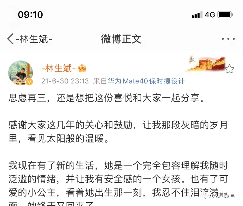 4年后,他在社交平台上发布了“再婚生女”的消息称:看到女儿出生的那一刻,我忍不住泪流满面,她终于又回来了,“她”代表自己失去的女儿,这不禁让人“细思极恐”。