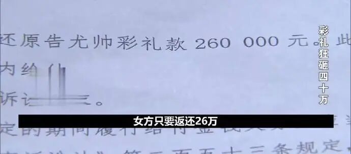 在记者的调解下,娜娜最终表态,愿意归还法院所判赔的26万元,但娜娜称40万元彩礼都已经花完了,自己手里根本没钱,只能尽力去还钱,短时间内根本无法凑齐26万元。