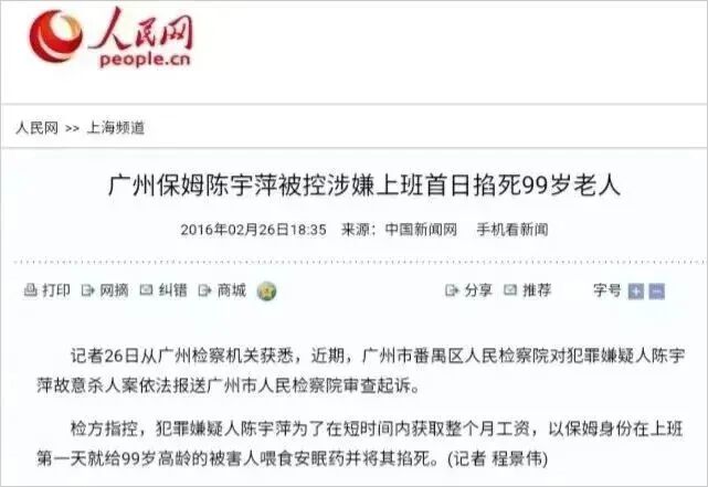 一旦老人卧病在床,和老人独处的保姆就处在优势地位。轻则谩骂虐待,重则谋财害命。