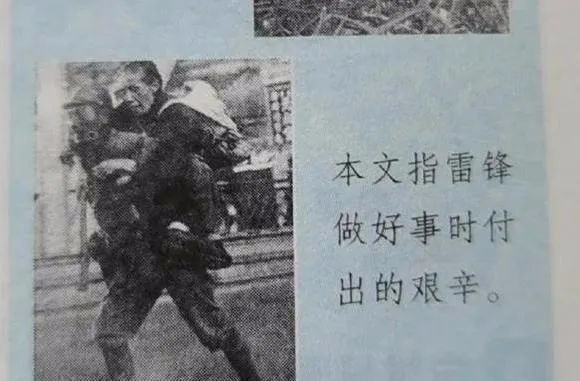 日前,正当中小学教材配图一事持续发酵之时,又有网友爆出大瓜,反映陕西人民教育出版社出版的《举一反三同步巧讲精练小学语文二年级下册》存在严重的插图配图错误:在词义巧理解栏目中,为“雷锋做好事时付出的艰辛”配的图片,疑为穿着日军军装的人背老太太的照片。