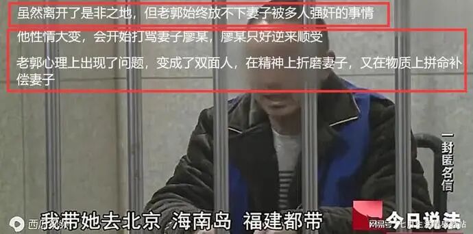 (三)老郭没脸在老家生活,带着妻儿去了广州,但老郭心理上开始出现了问题,满脑子里像放电影一样出现妻子被那几个男人压在身下的片段,他在精神上折磨着妻子廖某。