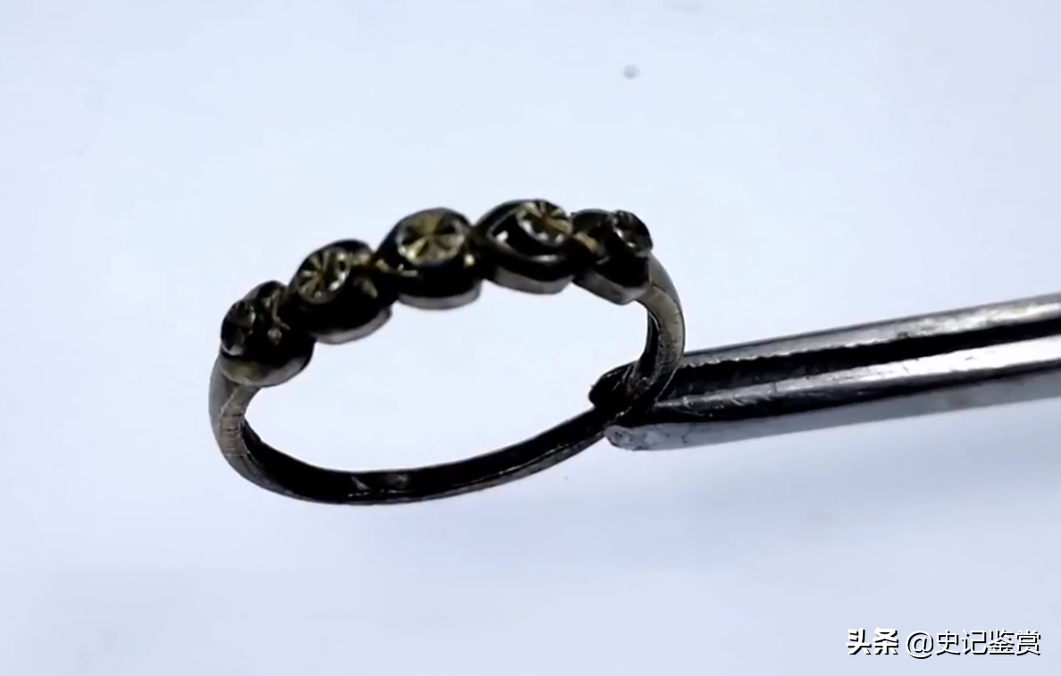在这名死者左手的无名指上带着一枚戒指,通过颜色看起来好像是银质的,戒指的顶端有五个心形图案,当中还雕刻有独特的图案。
