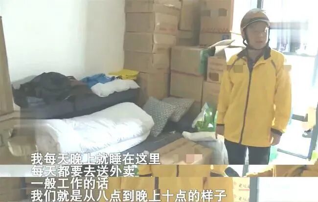 刘永超对记者表示自己在长沙做了两年外卖员,每天工作10个小时以上,睡在条件简陋的库房中,每个月收入8000元左右。