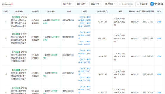 据企查查,华熙昕宇投资有限公司对外投资了多家公司,其中有一家叫广州华熙汇控小额贷款有限公司,截止2022年1月底,该公司涉案22起,大部分是作为原告小贷催收。