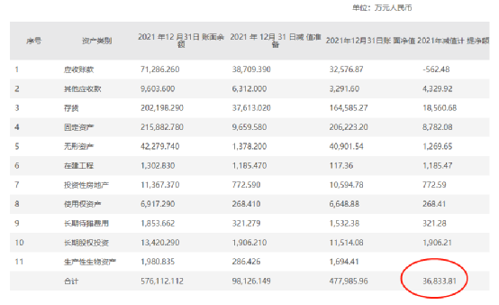 利润表显示,公司2021年计提了高达3.6亿的资产减值和信用减值,而2020年这两部分数字是4亿。