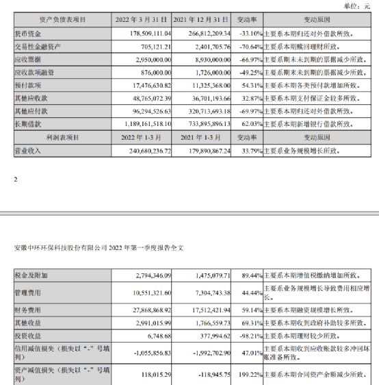 4月1日,中环环保发布了2022年一季度季报,并荣登A股三市季报出具速度第一。