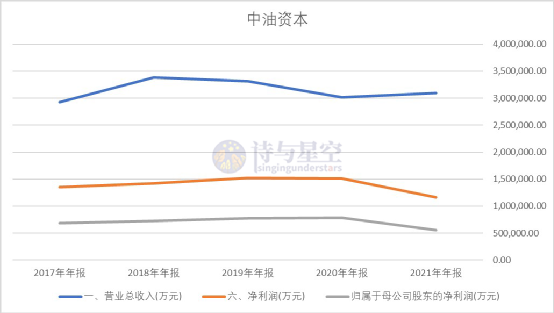可以发现一个有趣的现象,中油资本的归母净利润连利润总额的一半都不到,剔除掉所得税的影响,也不应该差距这么大,背后的原因是少数股东权益占了利润总额的一半以上。