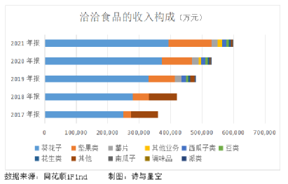 原本洽洽的主要产品是葵花子,但近几年以坚果为代表的“健康零食”越来越受到追捧。于是洽洽也逐渐提高坚果产品的产量,借助这条热门赛道实现业绩提升。