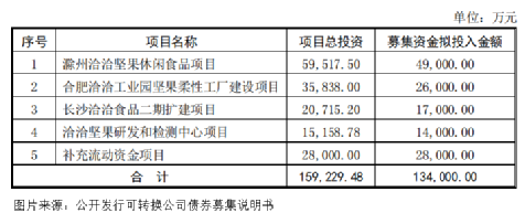 2020年发行可转债募集了13.4亿资金,主要用于新建安徽滁州、合肥洽洽工业园、长沙洽洽二期扩建等项目,预计3个项目建成后可年产瓜子产品78000吨、坚果22800吨。