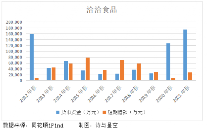 上市以来,洽洽食品大部分年份存在存贷双高的嫌疑,直到2020年发行可转债募集大笔资金才发生转变。