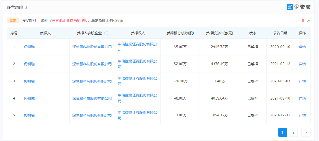 虽然并未对深信服产生直接的影响并按时解押,但也说明董事长的资金周转状况并不是非常乐观。