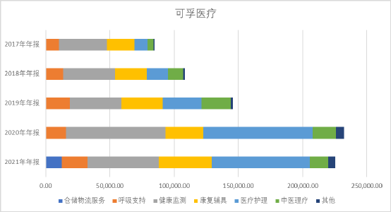 2019年,医疗护理3个亿,2020年超过8.5个亿,2021年回落到7.6个亿。