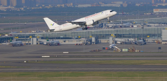 5月14日,6时52分,编号为B-001J的C919大飞机从浦东机场第4跑道起飞,于9时54分安全降落,标志着中国商飞公司即将交付首家用户的首架C919大飞机首次飞行试验圆满完成。